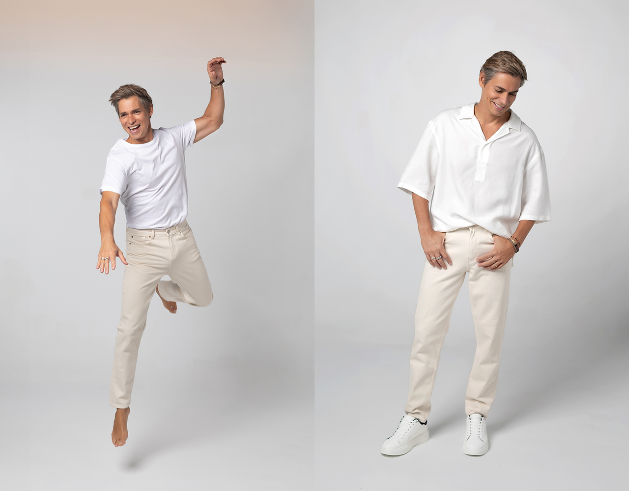 ugamos con la luz, las sombras y los silencios, buscando retratos que transmitieran calma, carácter y conexión. Cada fotografía refleja no solo su carisma, sino también esa elegancia natural que solo se logra cuando el artista se siente libre frente a la cámara.