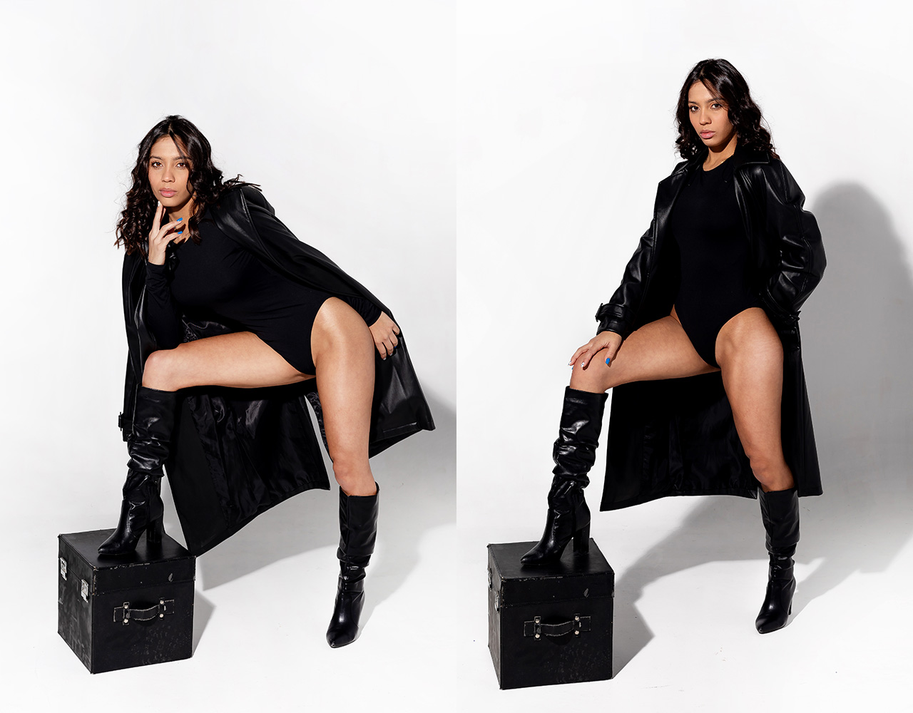 El blanco del estudio se convierte en escenario de carácter y actitud. Cada pose es una afirmación, cada gesto una decisión consciente: